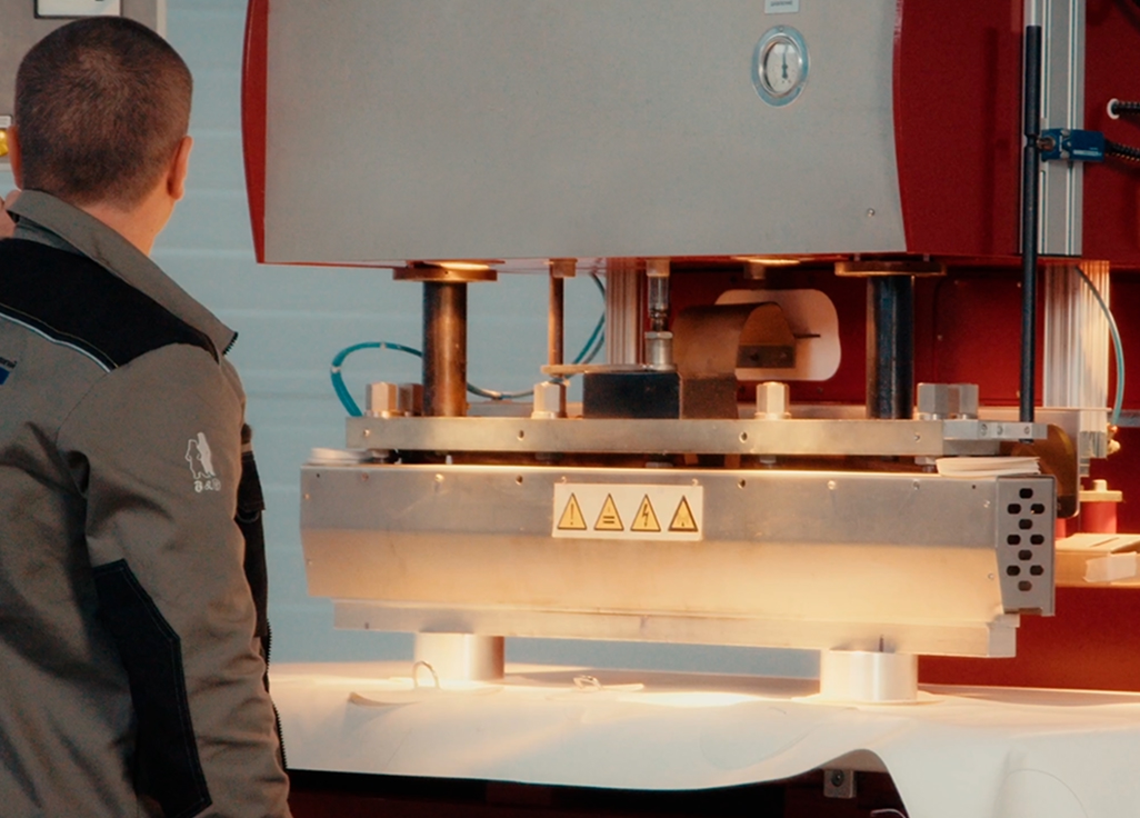 Сварка током высокой частоты - материал нагревается изнутри под высокочастотным напряжением, обеспечивая молекулярное соединение слоёв. Метод даёт прочный, гибкий и равномерный шов без дыма и запаха, с минимальным временем охлаждения.